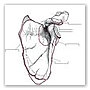 Name the structures that attach to the scapula on this anterior view of the left scapula. N.B. Labels are based on anatomy lectures from King's College London, but the image is taken from a public domain version of Grey's Anatomy, so unlabeled details may be outdated.
